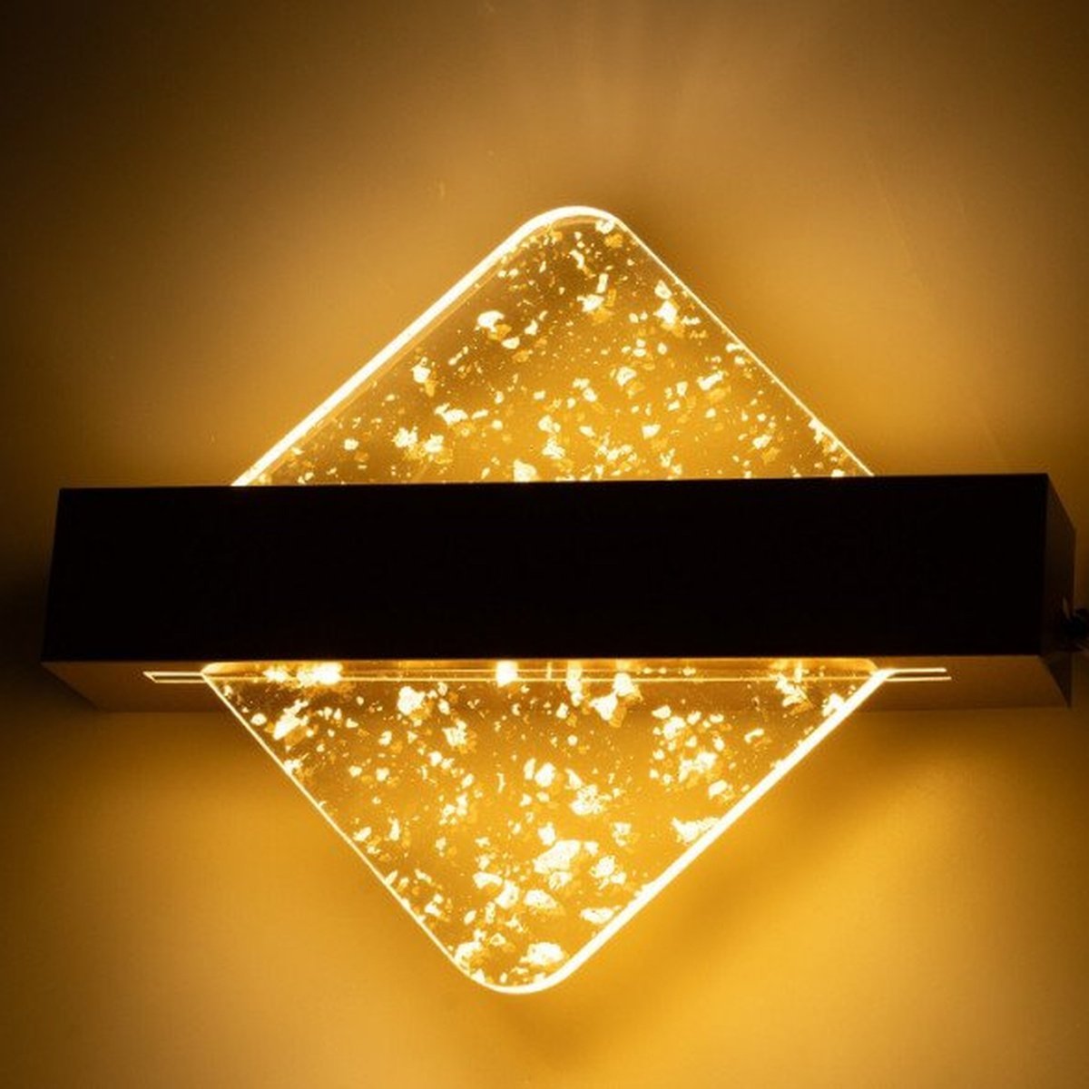 Aplica de perete LED Romb 8W cu design modern, Negru, Sticla/Acril, Lumina calda, 720lm, Dimensiuni 20x25cm, IP20