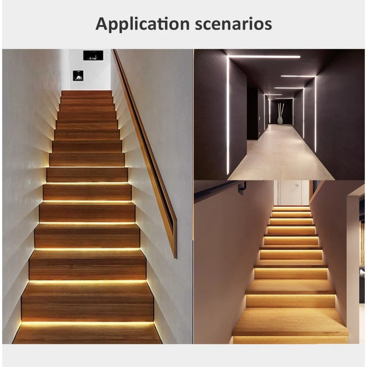 | Se poate folosi in mai multe scenarii, fie cu benzi led pe pereti/tavane fie la scari. | NOTA: |